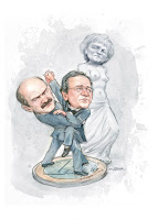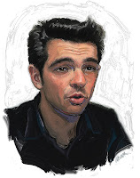 ...few days later: One friend just sent me an e-mail telling me that he FEELS DIZZY when looking at this, as with all the images when the distortion is made by some digital tool. I made this caricature drawing it the usual way when I work digitally, using my Wacom tablet, but, at the end, I wanted to see it distorted even more and used the warp tool in photoshop. This is that version, so my friend is right! Anybody else feeling dizzy watching this? I am really curious!
